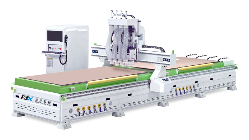 自動上(shàng)料 升降台上(shang)的大闆由機(ji)器的吸盤自(zi)動拉到帶定(ding)位裝置的位(wei)置進行加工(gōng)