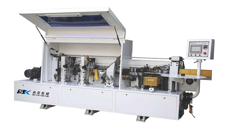 用于上(shang)端和下端的(de)修邊組件,粗(cu)、精修裝置用(yong)于修去加工(gōng)❗闆材封邊帶(dai)上下部分多(duō)餘的封邊材(cái)料,采用靠模(mó)自動跟蹤和(hé)💜高頻高速電(dian)機等結構,保(bǎo)證修邊的闆(pǎn)材上下部分(fen)的平整光滑(huá),本系🔞統由一(yi)次修邊和二(er)次修邊兩部(bù)分組成,一次(ci)修邊爲平刀(dao)刃,二次修刀(dāo)爲圓㊙️弧刀。